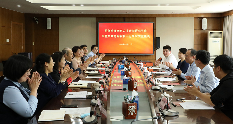 5月12日下午,南京农业大学研究生院常务副院长、学位办主任吴益东带队来我院就研究生培养质量、奖助体系建设、信息化建设管理等方面开展交流座谈。党委副书记、副院长、纪委书记陈万权、副院长李哲敏及相关处室负责人参与交流座谈,座谈会由陈万权主持。